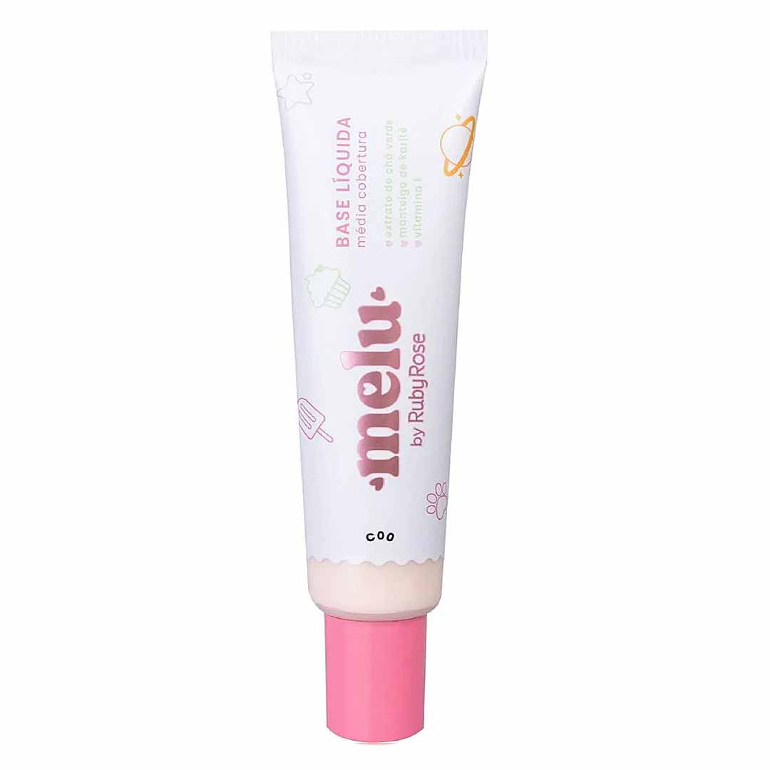 A base líquida da linha Melu possui cobertura média mais sequinha e confortável, acabamento matte e com uma cobertura que permite construir camadas.